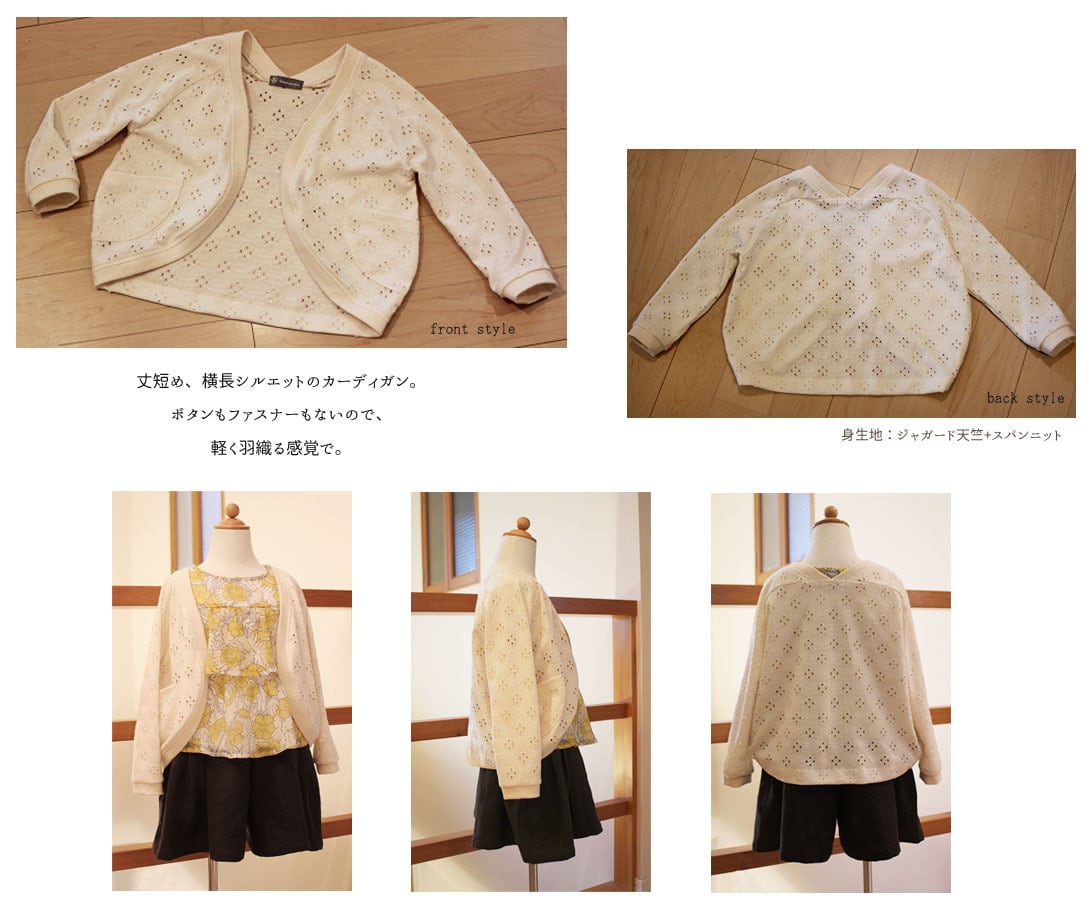 こちらは、身巾ゆったり・丈の短い設定のカーディガンですので、あらかじめご承知おきください。